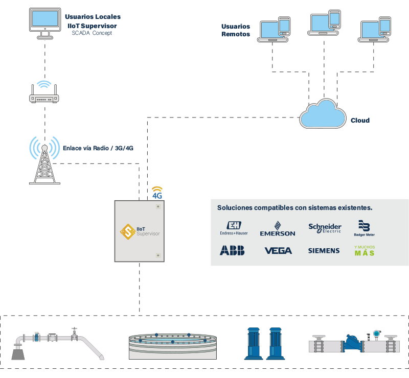 Las soluciones IIot Supervisor Water Series integran tecnologías de la Industria 4.0 potencializadas por nuestro know how en automatización y monitoreo remoto de producción y distribución de agua